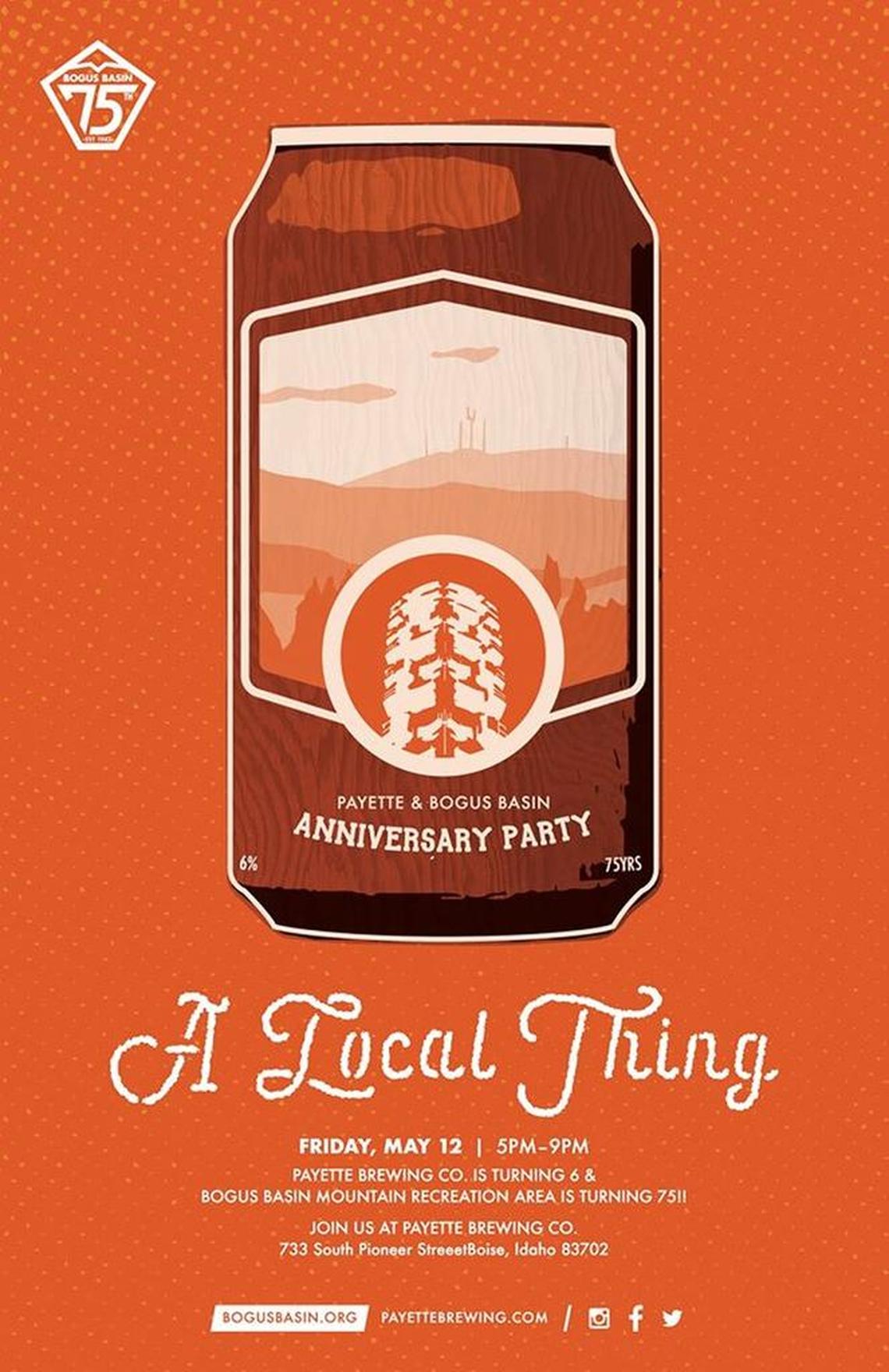 ▪ Payette Brewing Co. and Bogus Basin Mountain Recreation Area are celebrating a joint anniversary party. Dubbed “A Local Thing,” it’s from 5 to 9 p.m. on Friday, May 12, in the Payette beer garden at 733 S. Pioneer St.