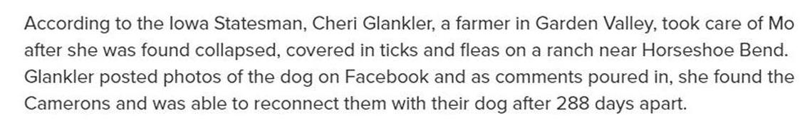 The latest example? Courtesy of ABC News, which referred to a story in our own “Iowa” Statesman about Mo, the 14-year-old Boise dog found after going missing for nine months in the Idaho mountains.