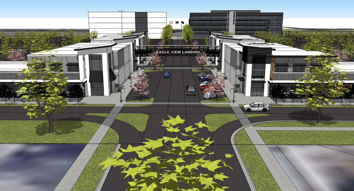 The Meridian Planning and Zoning Commission held a hearing last week on a 52-acre project that would include a new Topgolf-style entertainment center , a new headquarters for the Idaho Central Credit Union, a hotel, restaurants, and a medical office south of I-84 off Eagle Road. The developer, BVA, is seeking to have a preliminary plat for the project, called Eagle View Landing, approved by the commission so it can move forward with construction.