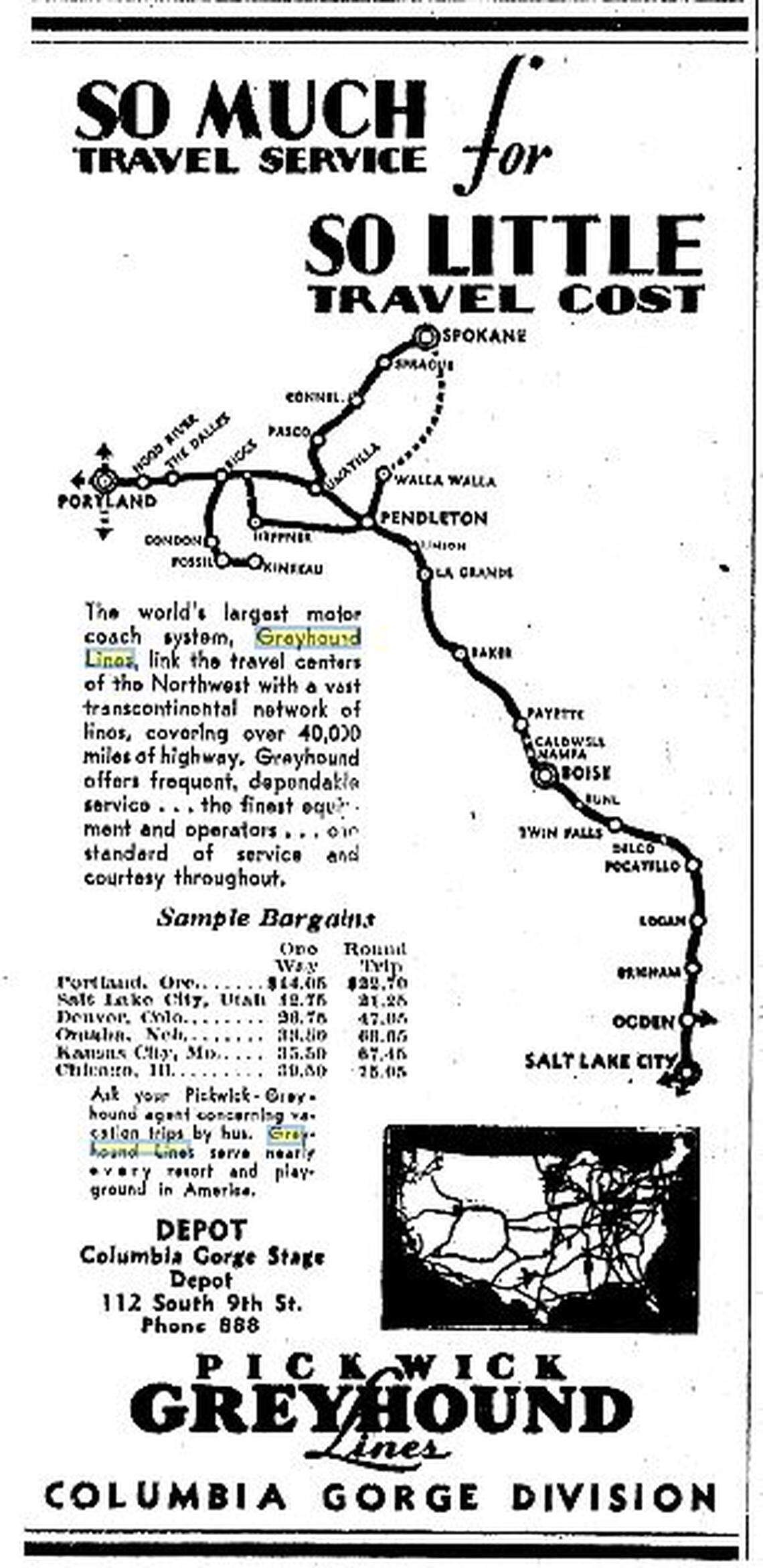 Only two Greyhound buses arrive at the terminal each day: one headed from Denver, on its way to Portland, comes in at 7 a.m. and leaves 45 minutes later. The other, going to Denver, arrives at 10:30 p.m. and leaves at 11:15 p.m.