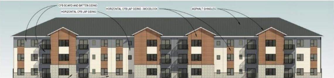 The apartment project would include nine three-story buildings with a mix of studio apartments, one-bedrooms, two-bedrooms and three-bedrooms.
