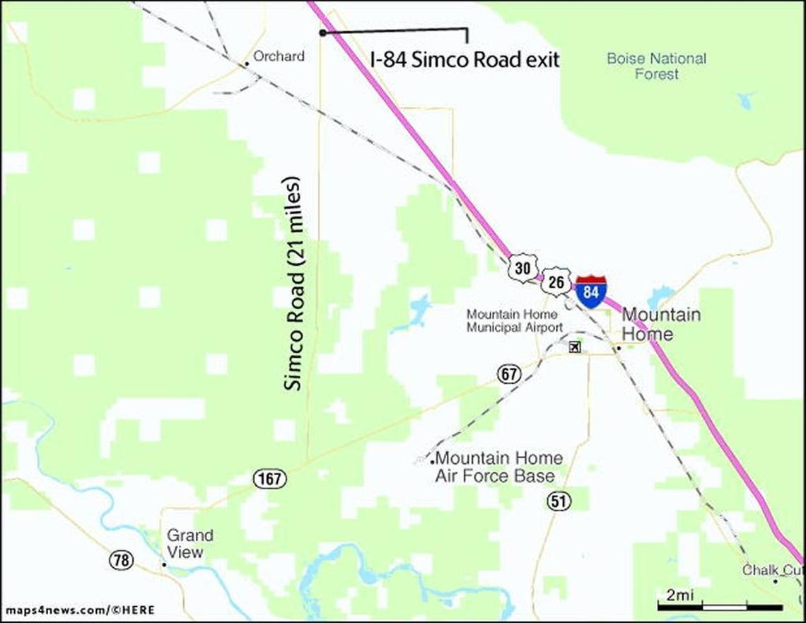 Simco is a risky road. It offers a north-to-south shortcut from Interstate 84 at its northern end, 2 miles southeast of the Ada-Elmore county line, to Idaho 167 at its southern end, near Mountain Home Air Force Base and Grand View. Four drivers have died on it in the past three years, including two since Thanksgiving.