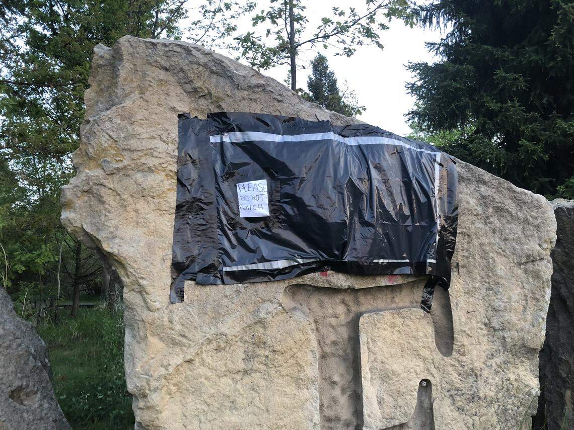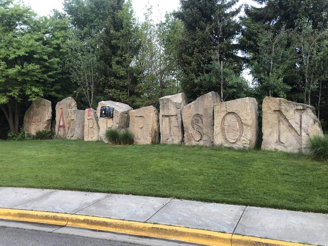 The rock entrance sign to the city park was defaced with red spray paint. Parks staff had it cleaned up by Monday morning.