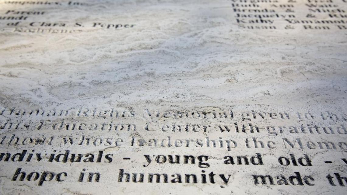 Another tag contained a racial slur and a message declaring black people aren’t human, said Prinzing, executive director of the Wassmuth Center for Human Rights, whose office stands just feet from the memorial. That tag was written on a marble tablet, directly below the engraved first paragraph of the Universal Declaration of Human Rights — a juxtaposition Prinzing believes was purposeful.