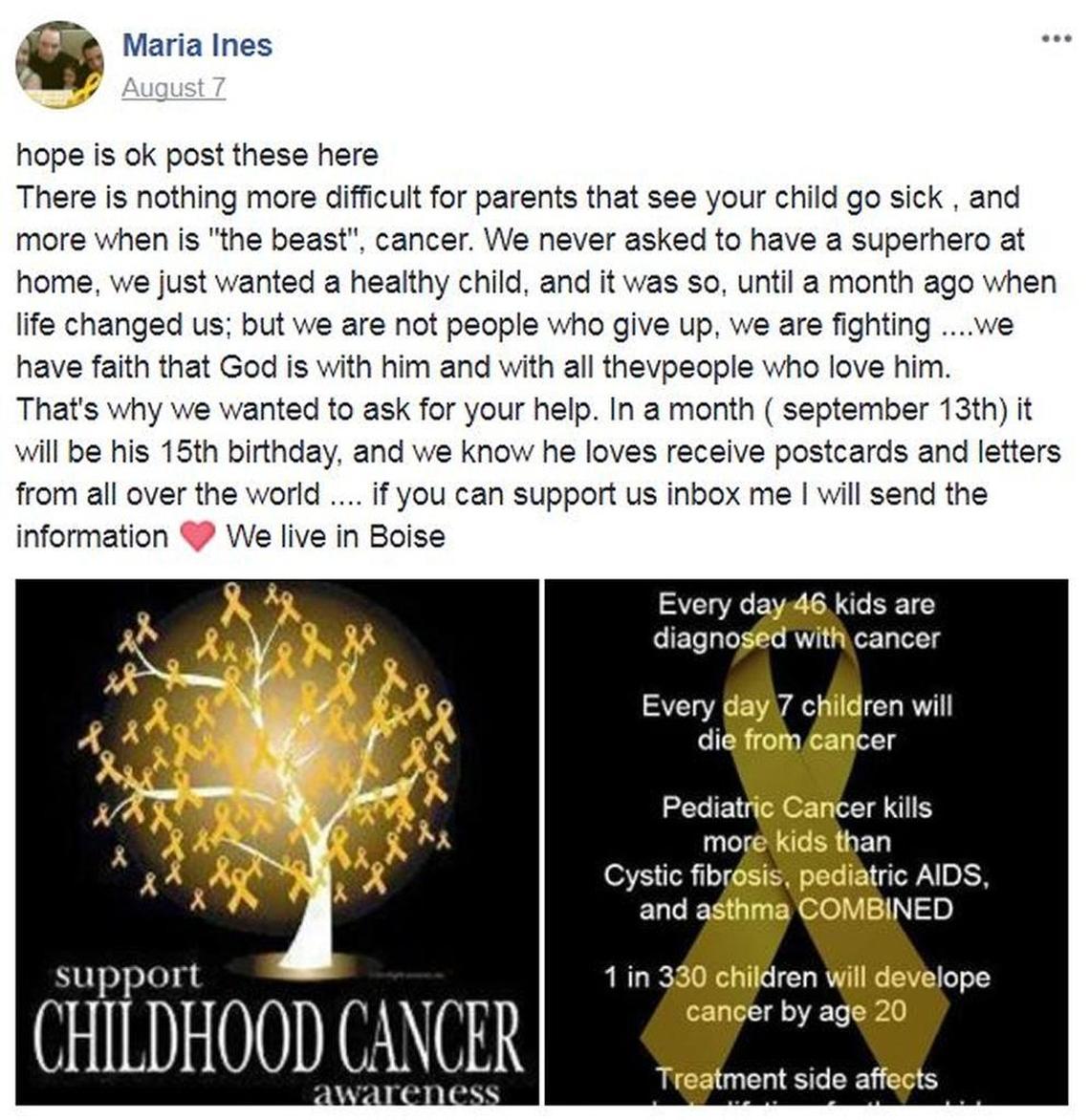 Ibanez-Donaldson posted a note in early August on the Boise Bench Dwellers Facebook group, asking for people to mail her son postcards for his birthday.