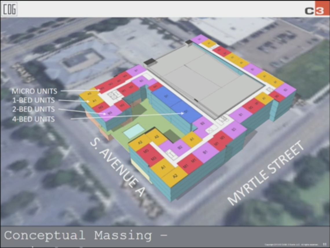 The apartments would be built on a 1.8-acre parcel east of WinCo Foods on Myrtle Street. Micro-units would be the smallest apartments, but graphics from the developers showed one-, two- and four-bedroom options in the development.
