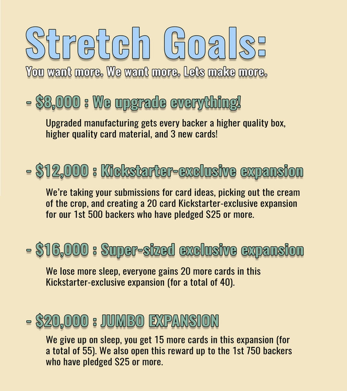 Since the game reached its goal on Kickstarter, Welch and Worstell are looking to hit additional goals that would allow them to increase the quality of the card game. The first new goal of $8,000 was met Sunday, but they are still working to raise more money and meet additional goals. They said that in the future they are looking to expand the game, but they also have a list of other games they’d like to start creating.