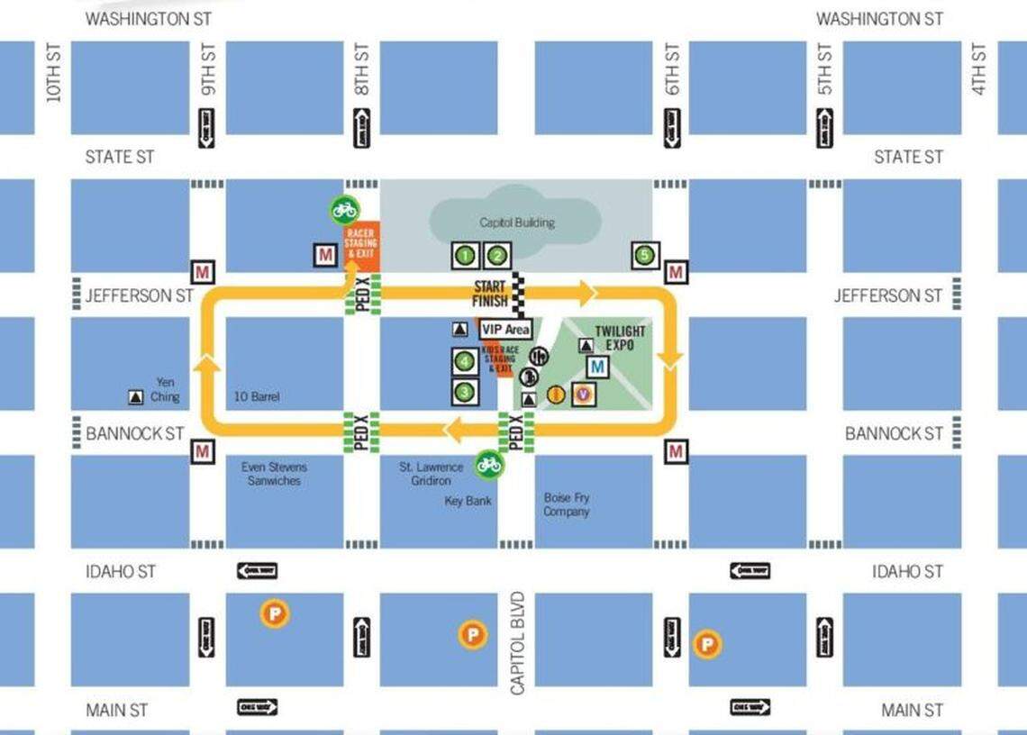 The 35th annual Twilight Criterium will follow its usual path: between 6th and 9th Streets in the north-south direction and Jefferson and Bannock streets going east-west. The track’s start/finish line will be directly in front of the Idaho Capitol.