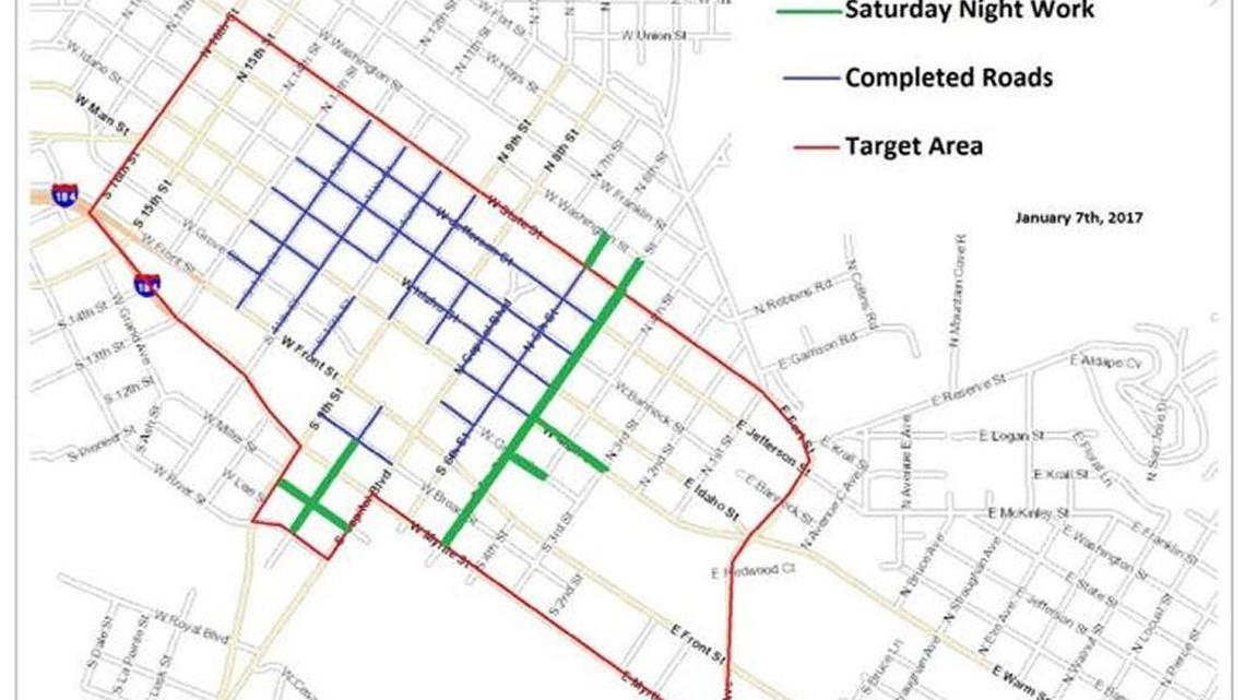 Saturday night, crews planned to concentrate on 6th Street between Myrtle and Washington streets, as well as the “BoDo” area between Capitol and 9th streets.