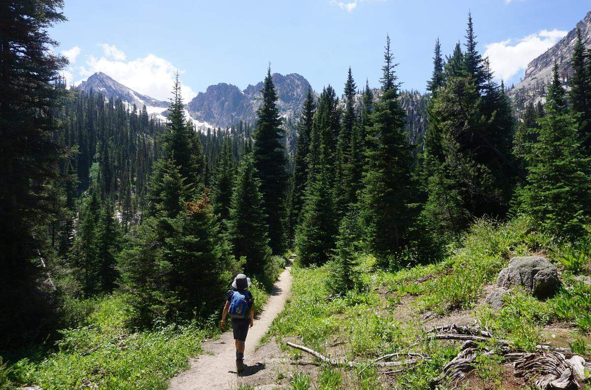 My son and I arrived at the turn for Alpine Lake high in the Sawtooth Wilderness at the same time as a couple. We all debated: Take the short, downhill walk to Alpine Lake now, or do it on the way back — after completing the steep final climb to Sawtooth Lake.
