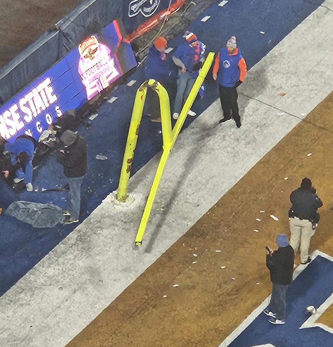Boise State fans never gave up in fight vs. goalpost. See uprights find watery graves